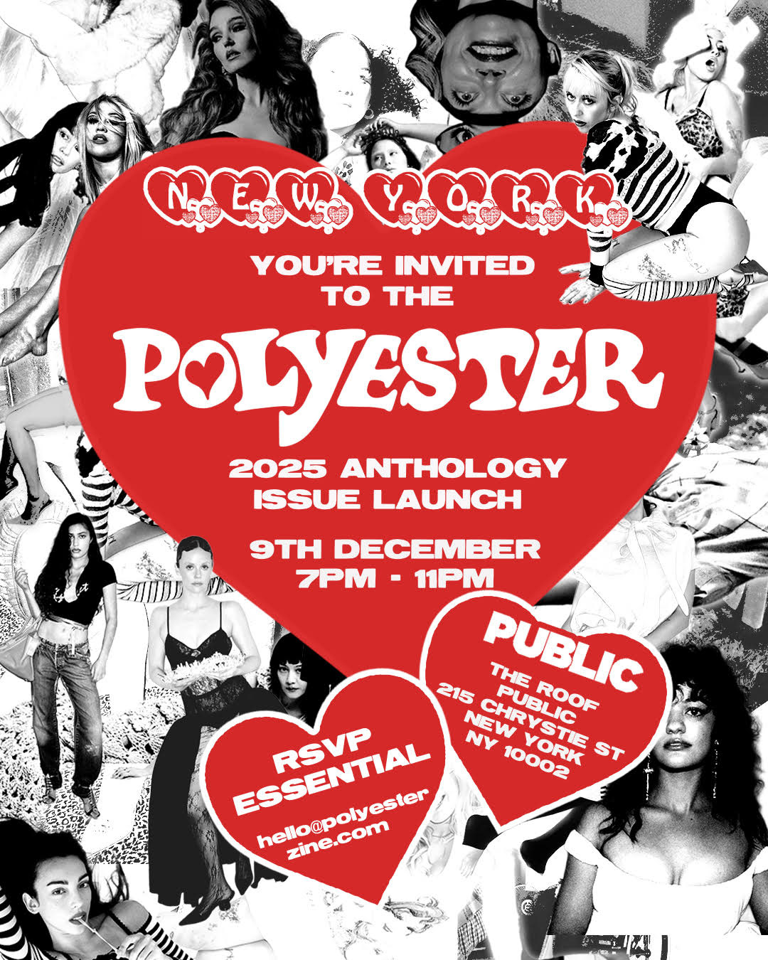 Since 2021 I've been a regular contributor to the iconic UK-based zine, Polyester, in myriad capacities: as video director/editor, podcast producer/co-host/editor, event producer, production coordinator and videographer. See our work together below!
